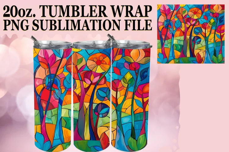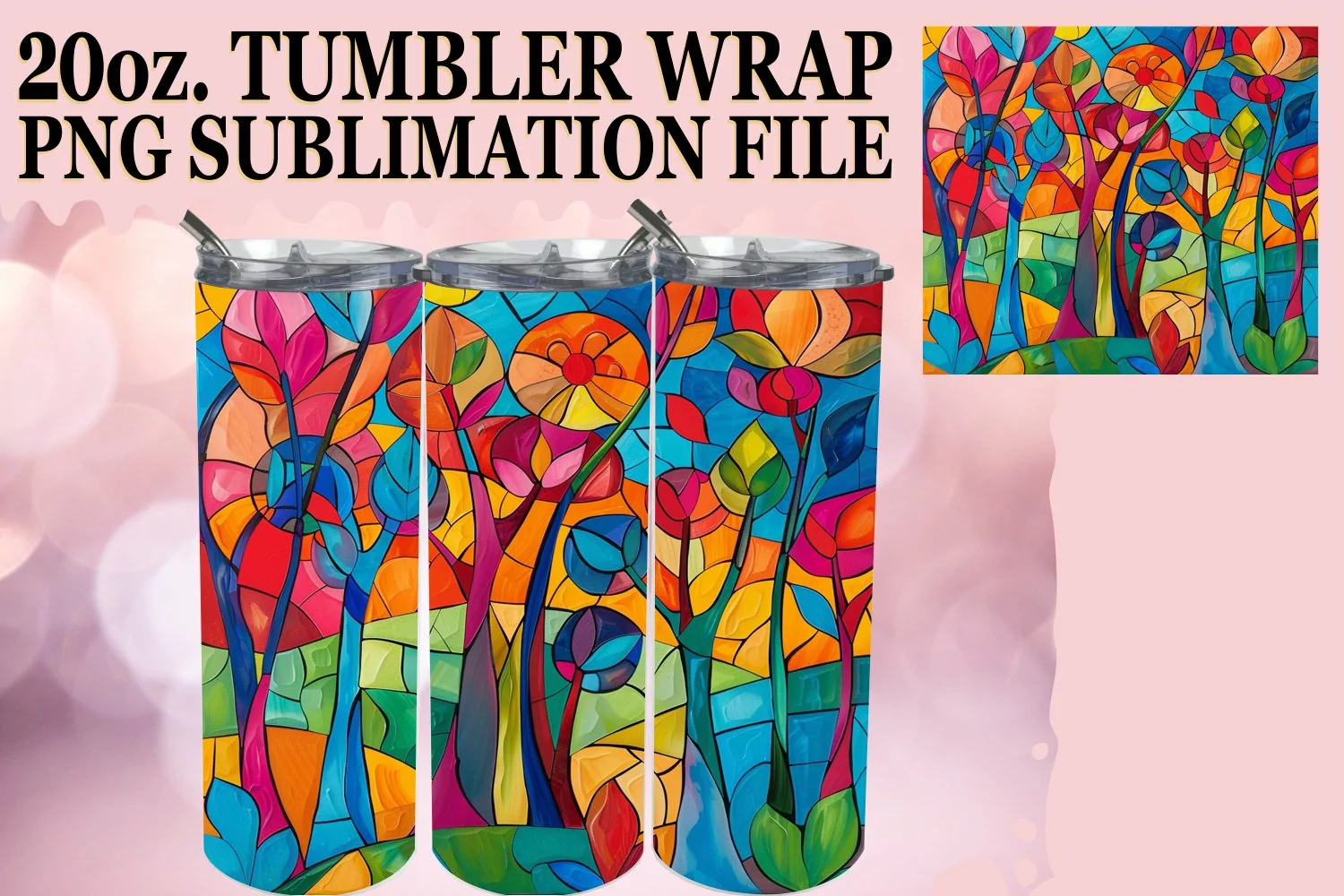 Colorful Stained Glass Tree Design 20oz Wrap example image 1