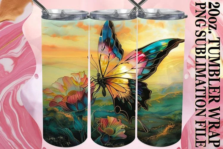 20oz Wrap: Glittering Spring Butterfly Patterns