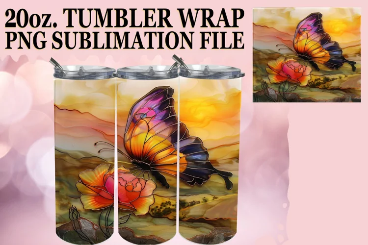 Spring-Inspired Glitter Butterfly Tumbler Wrap 20oz