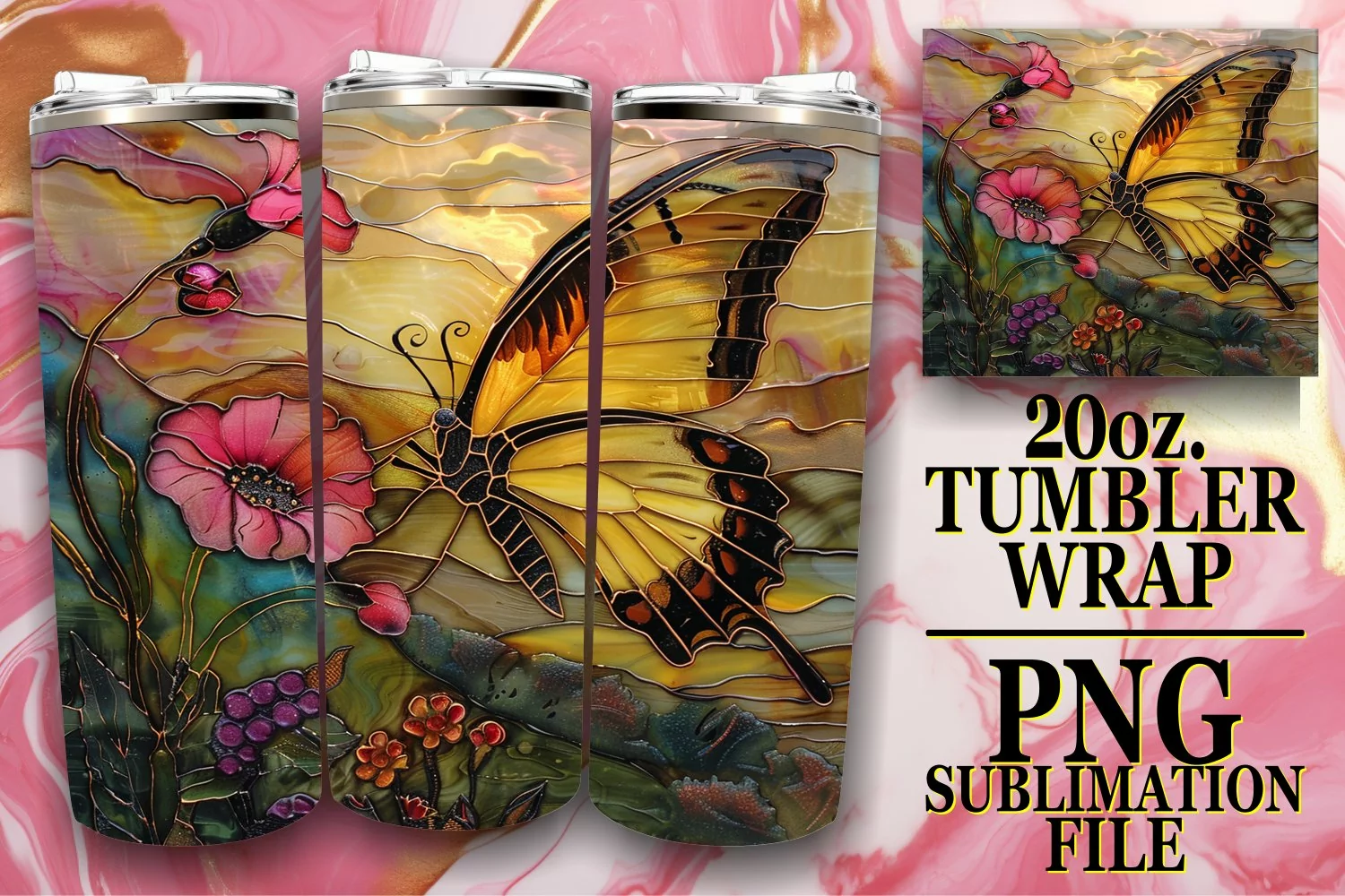 Similar Design Products to 20oz Tumbler Wrap: Beautiful Glitter Butterflies