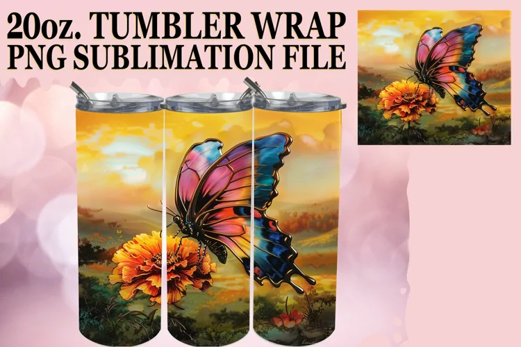 Shimmering Glitter Butterfly Tumbler Wrap 20oz