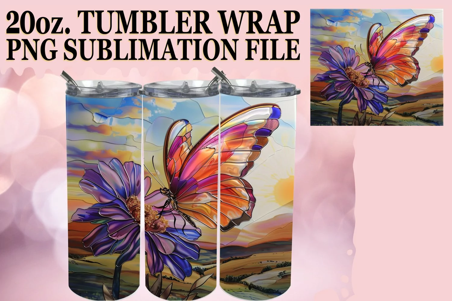 20oz Tumbler Design: Shimmering Butterfly Wrap