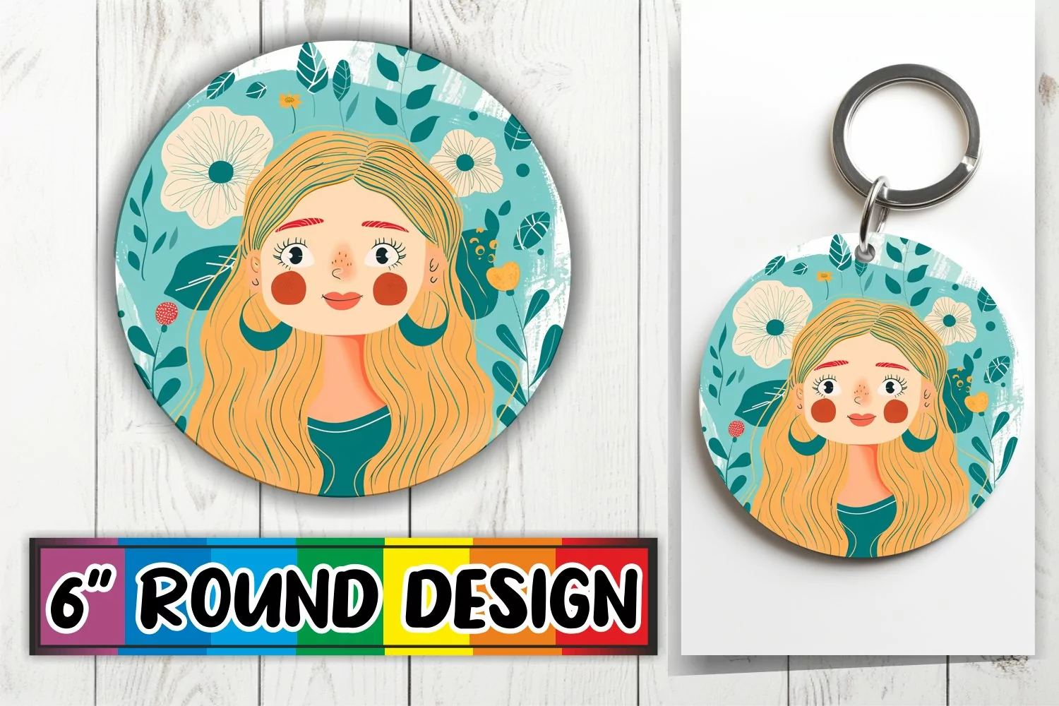 Similar Design Products to Lovely Female Portrait Round Design with Flowers PNG