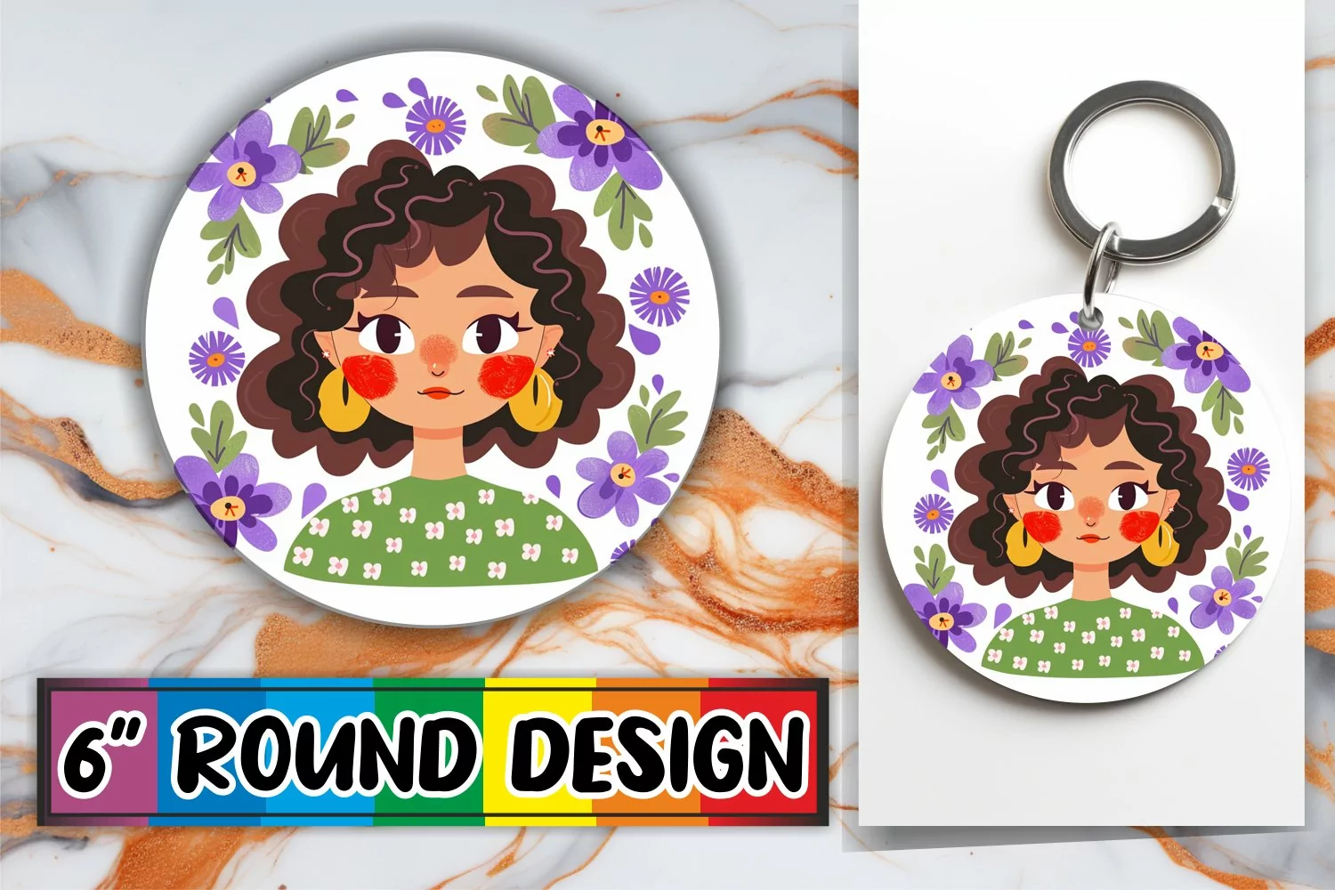 Similar Design Products to Chic Female Portrait Round Design with Flowers PNG
