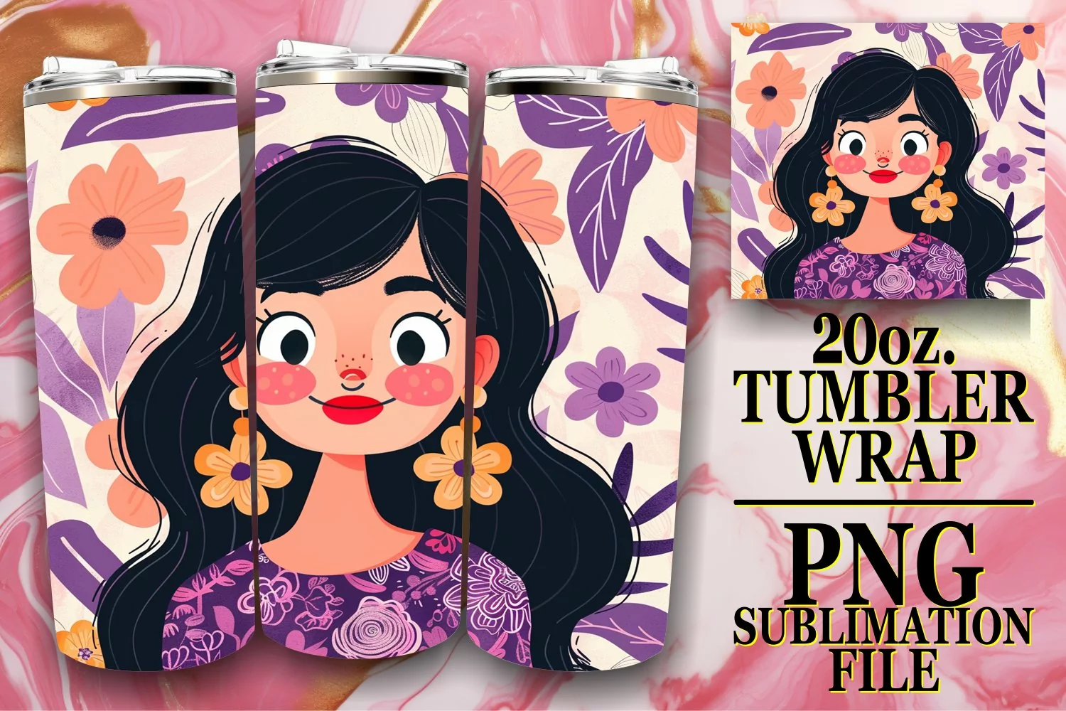 Beautiful Female Tumbler Wrap with Floral Art 20oz example image 1