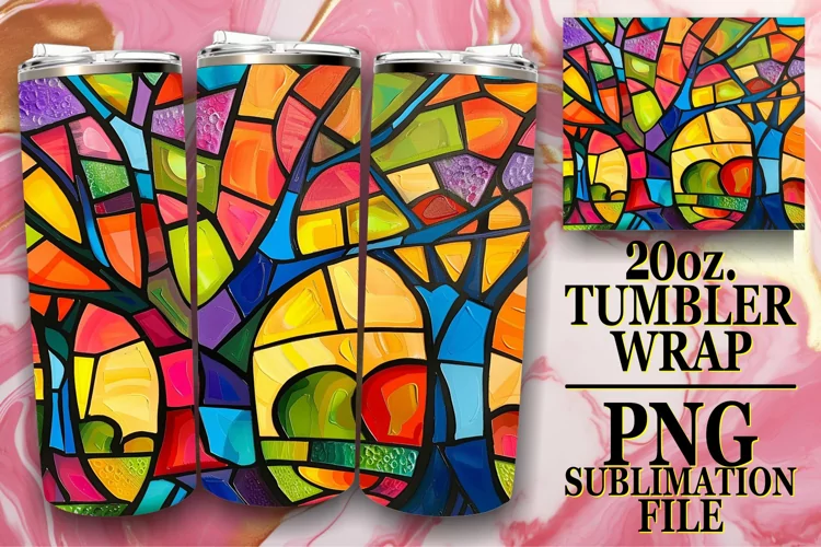 20oz Stained Glass Tree Tumbler Wrap Colorful Design example image 1