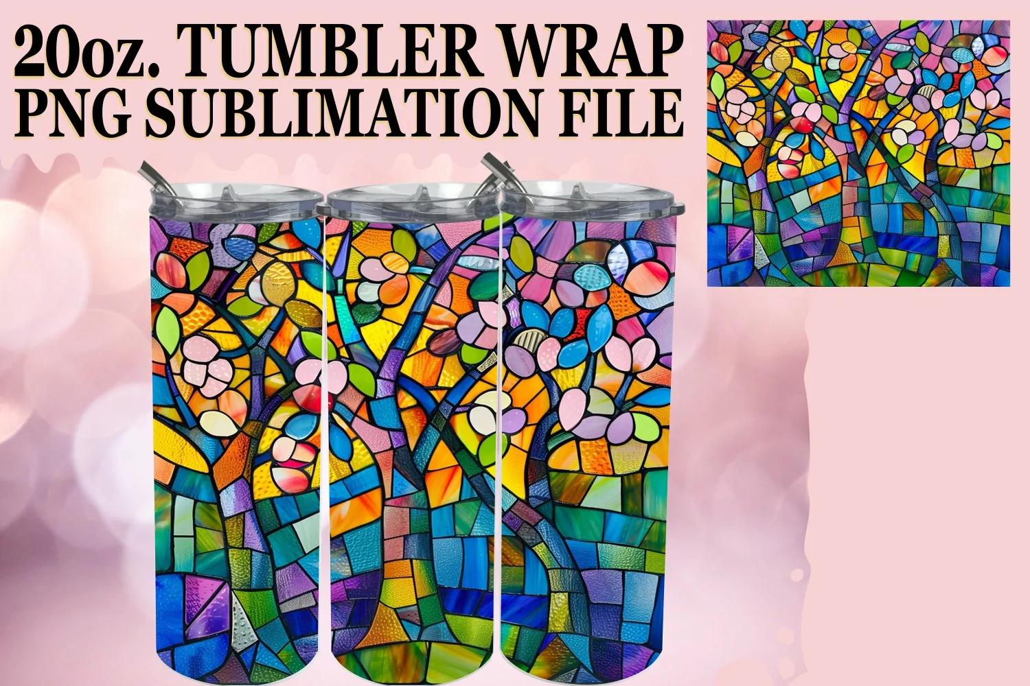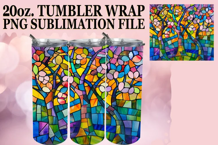 Colorful Stained Glass Tree Wrap 20oz Tumbler Design