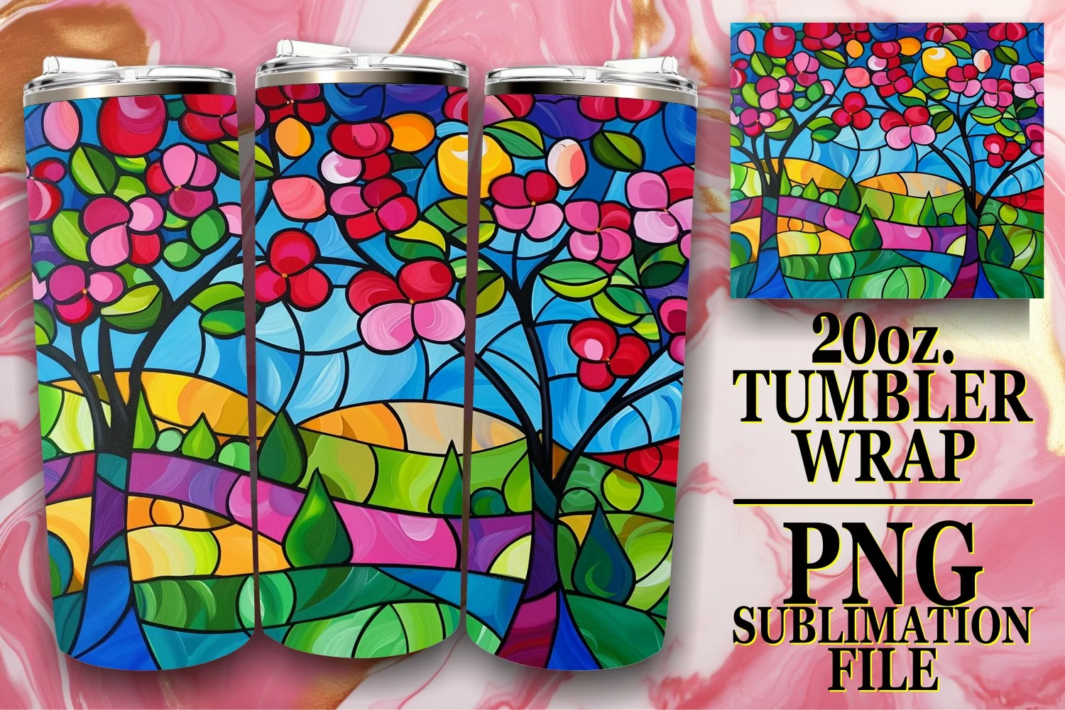 20oz Wrap Stained Glass Tree Colorful Tumbler Design example image 1