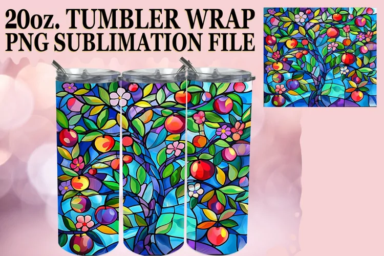 Stained Glass Tree Tumbler 20oz Wrap Colorful Art