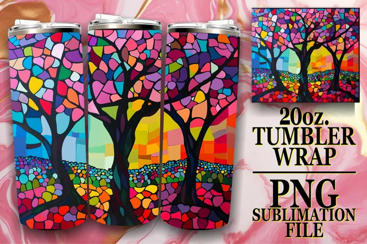 Colorful Tree 20oz Stained Glass Tumbler Wrap Sublimation
