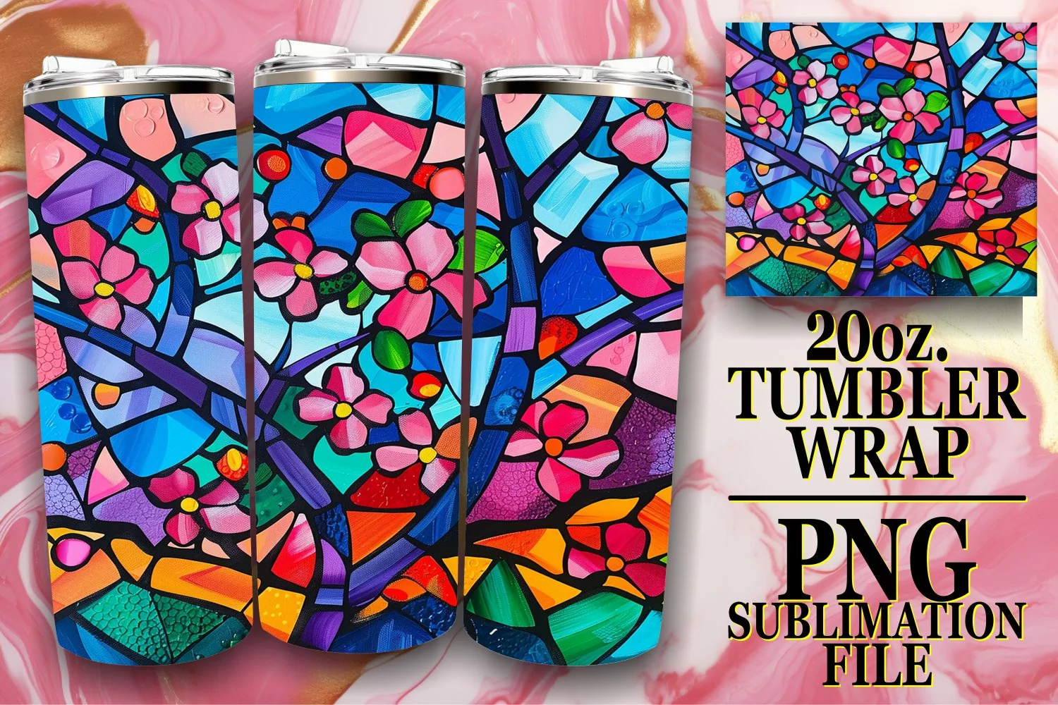 Similar Design Products to 20oz Tumbler Wrap Stained Glass Tree Colorful Sublimation