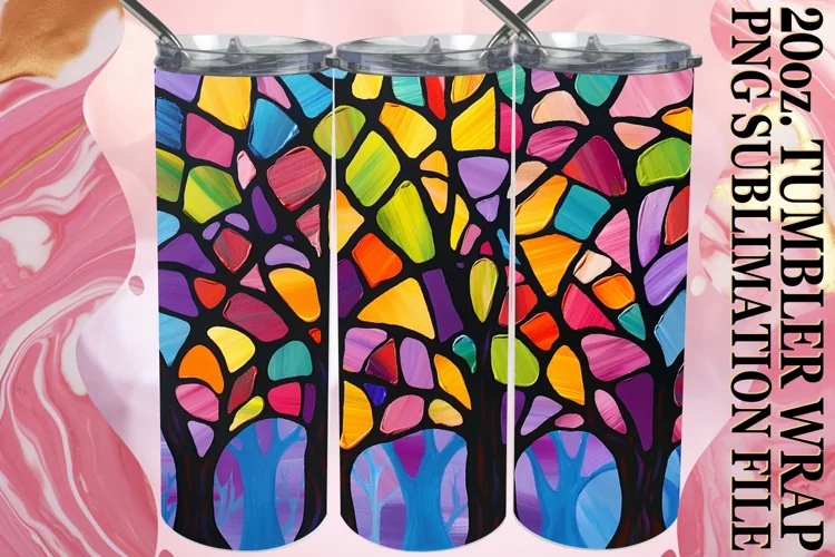 Stained Glass Tree Wrap 20oz Tumbler Colorful Art