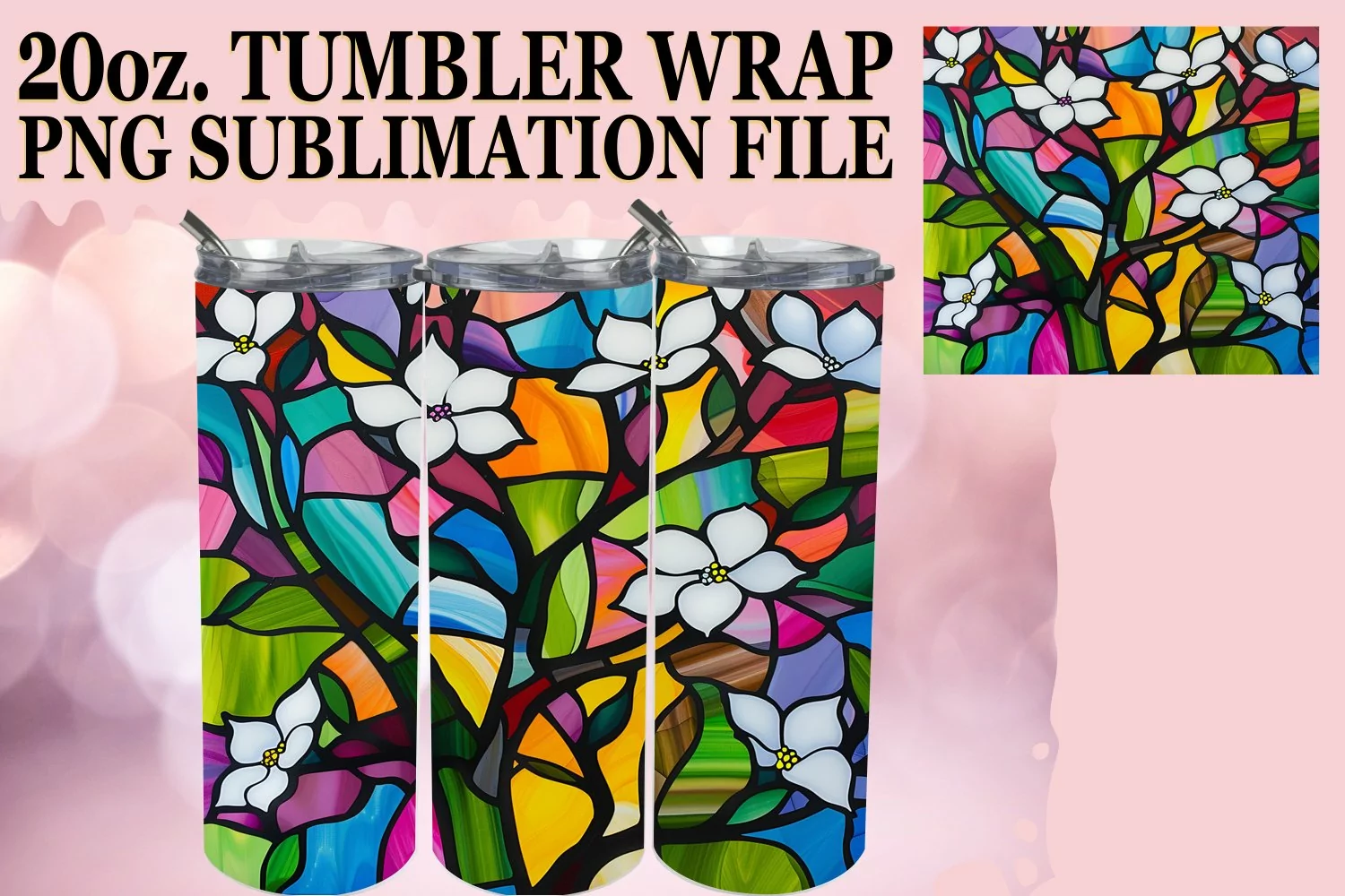 Colorful Stained Glass Tree Wrap 20oz Tumbler Art example image 1