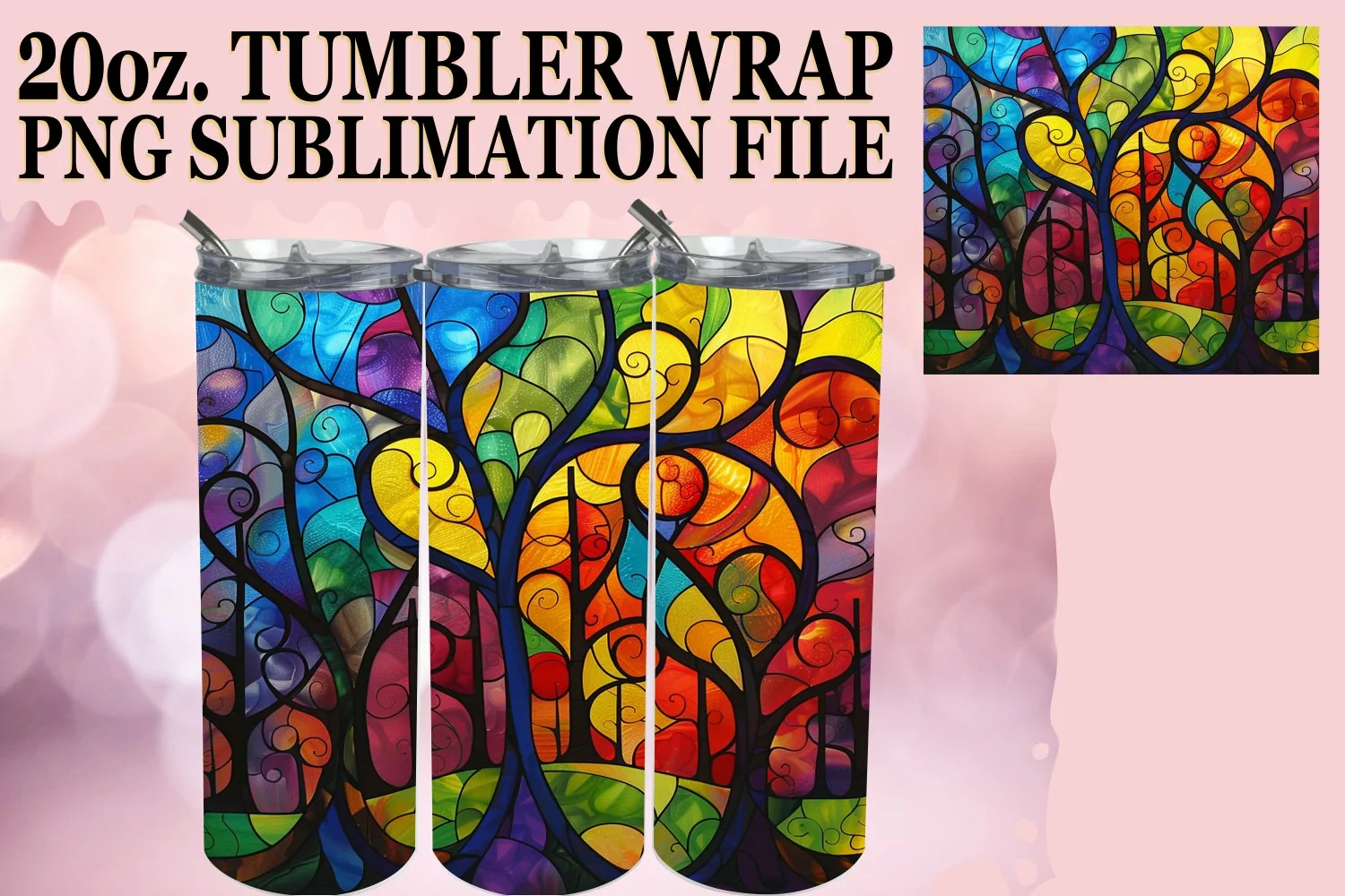 Stained Glass Tree 20oz Wrap Colorful Tumbler Design example image 1