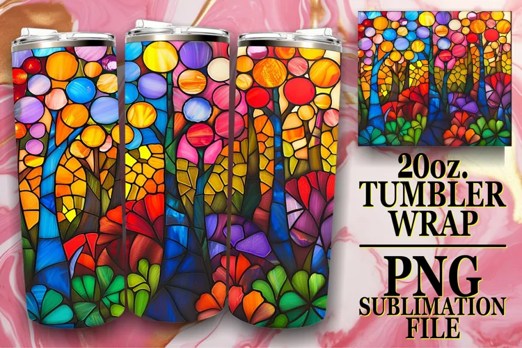 Similar Design Products to Vibrant Stained Glass Tree Wrap 20oz Tumbler Art