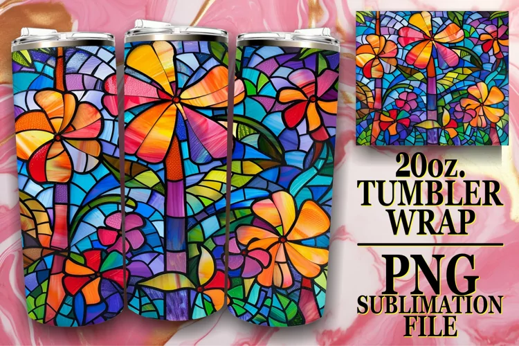 20oz Wrap Stained Glass Tree Sublimation Tumbler Design