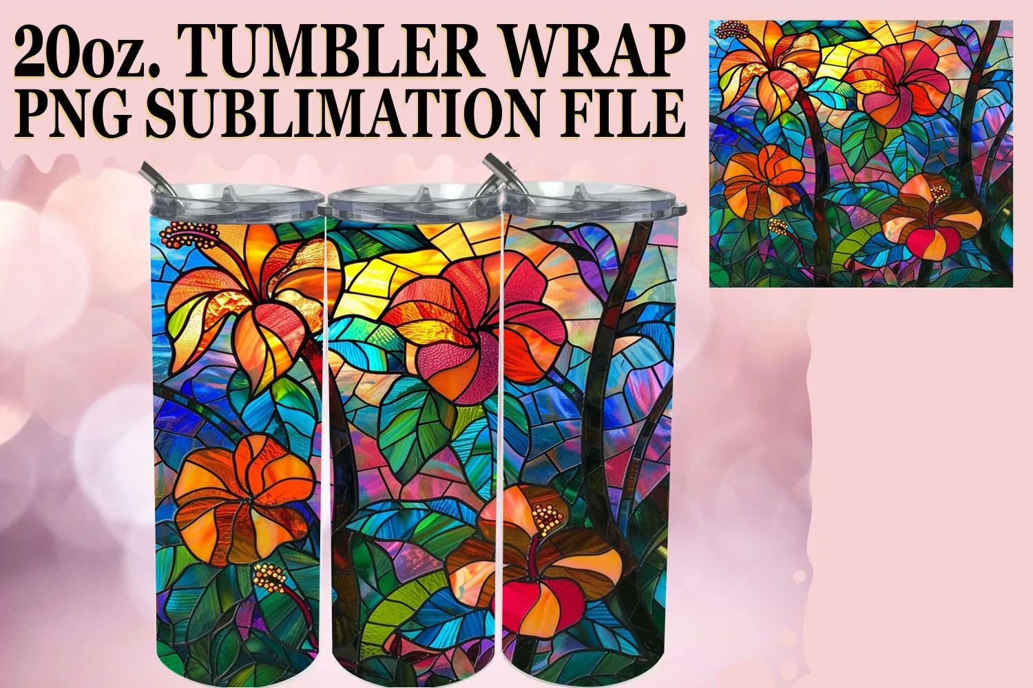 20oz Colorful Tumbler Wrap Stained Glass Tree Design example image 1