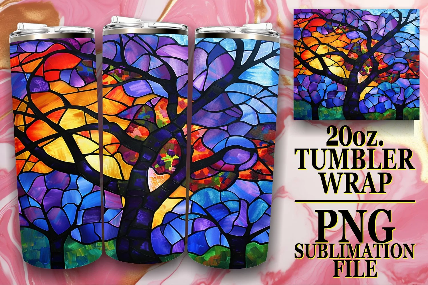Similar Design Products to 20oz Stained Glass Tree Tumbler Wrap Colorful Sublimation