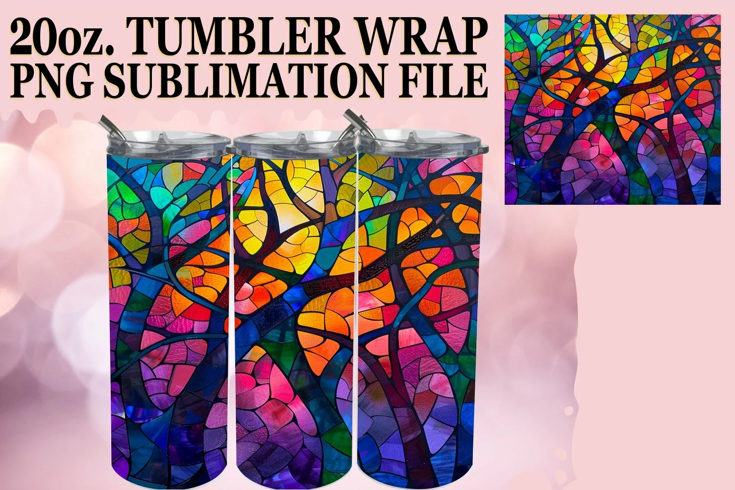 Colorful Stained Glass Tree 20oz Tumbler Wrap Art example image 1