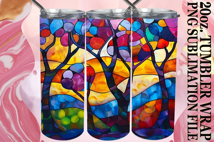 Stained Glass Tree 20oz Wrap Colorful Tumbler Design