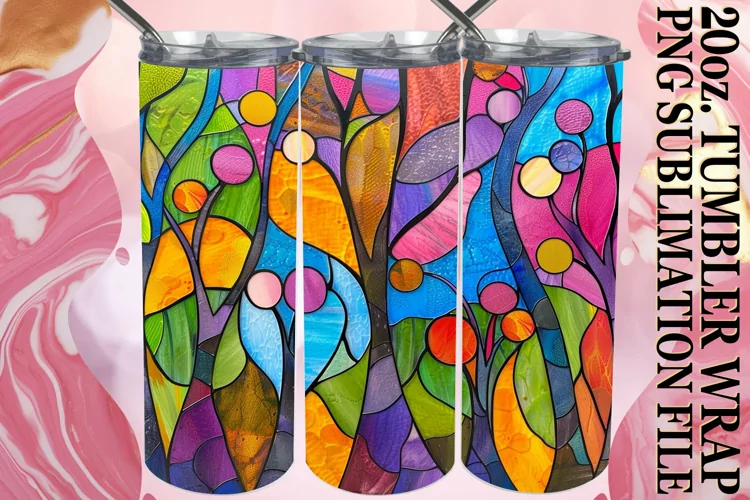Stained Glass Tree 20oz Colorful Tumbler Wrap Design