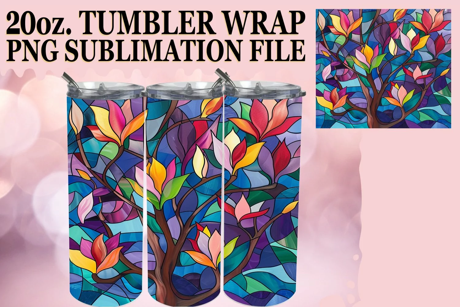 20oz Tumbler Stained Glass Tree Wrap Colorful Art example image 1