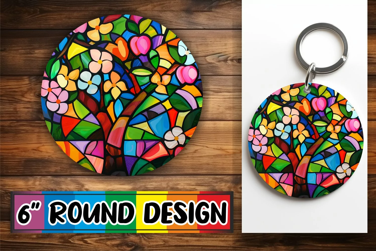 Similar Design Products to Stained Glass Tree Round Design Colorful Keychain