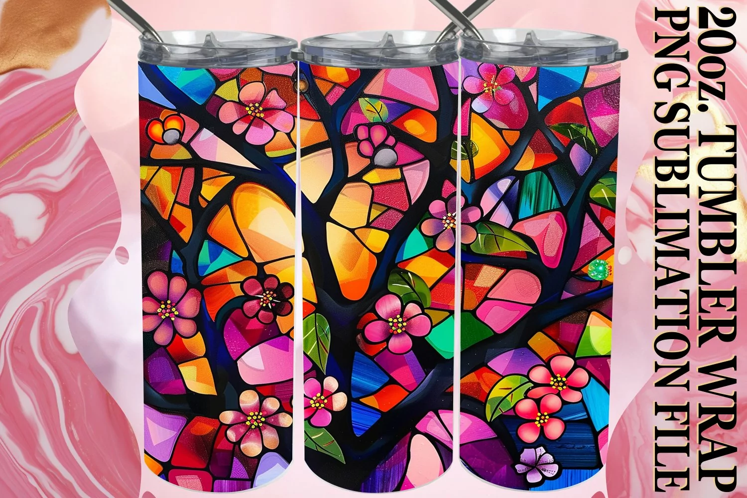 Colorful Tumbler Wrap 20oz Stained Glass Tree Design example image 1