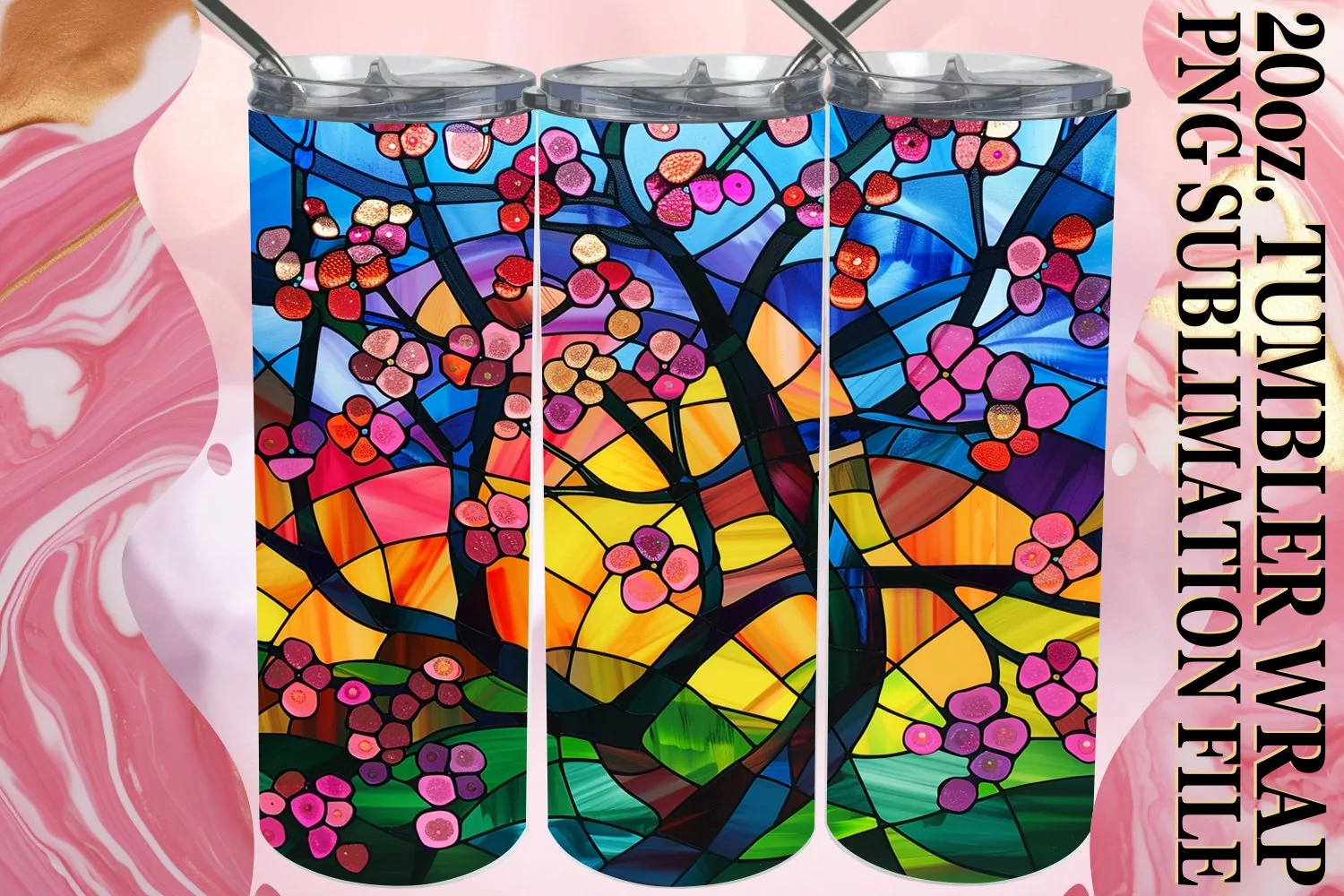 Colorful Tree 20oz Tumbler Wrap Stained Glass Art example image 1
