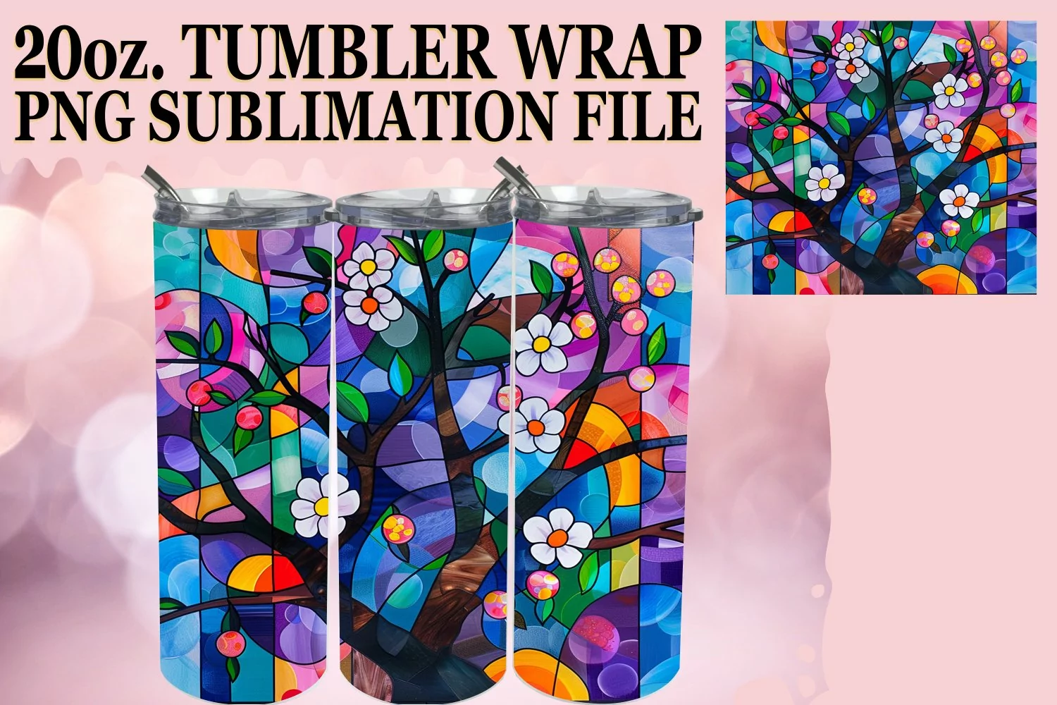 Stained Glass Tree 20oz Tumbler Wrap Colorful Art example image 1
