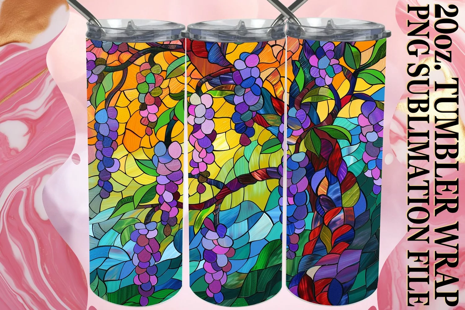 Similar Design Products to Colorful Stained Glass Tree 20oz Tumbler Wrap Design
