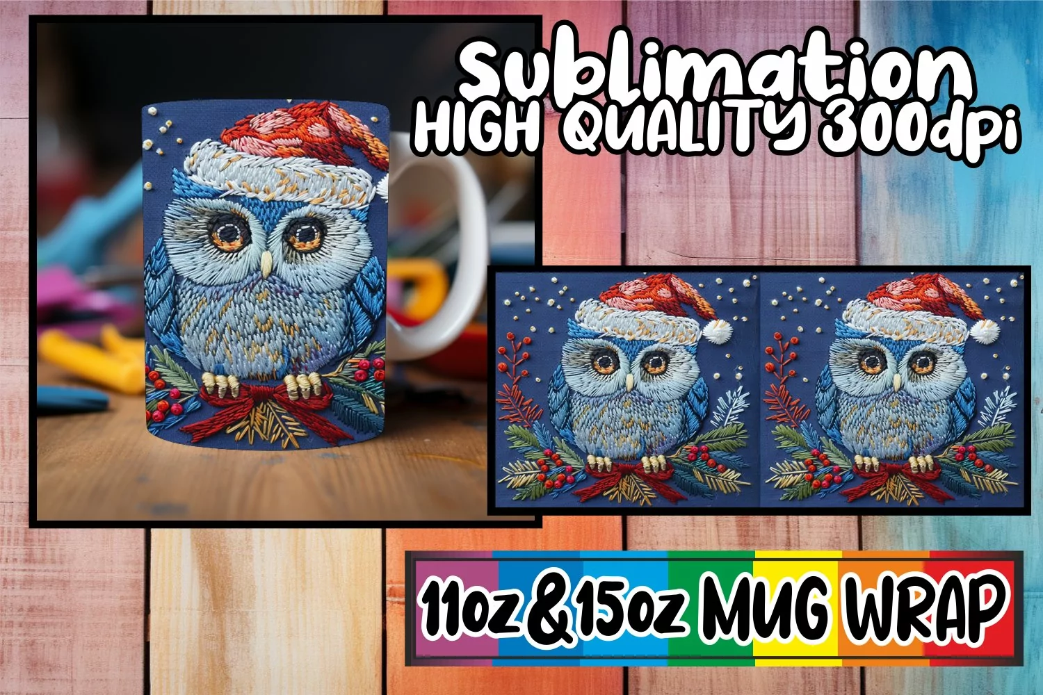 Holiday Owl Mug Wrap Embroidered 11oz 15oz Design example image 1