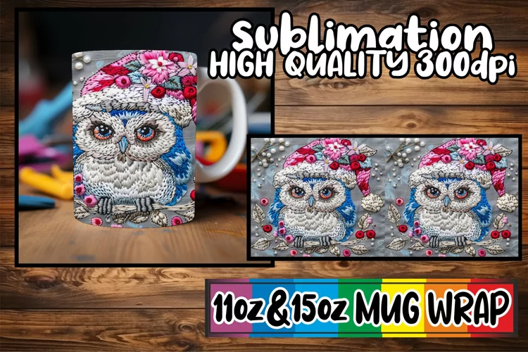 Coffee Mug Mug Sublimation Design Christmas Mug Sublimation Sublimation Mug Wrap Sublimation Coffee Cup Christmas Mug Wrap Owl Mug Wrap Winter Mug Wrap Embroidered Sublimation 3d Embroidered Png