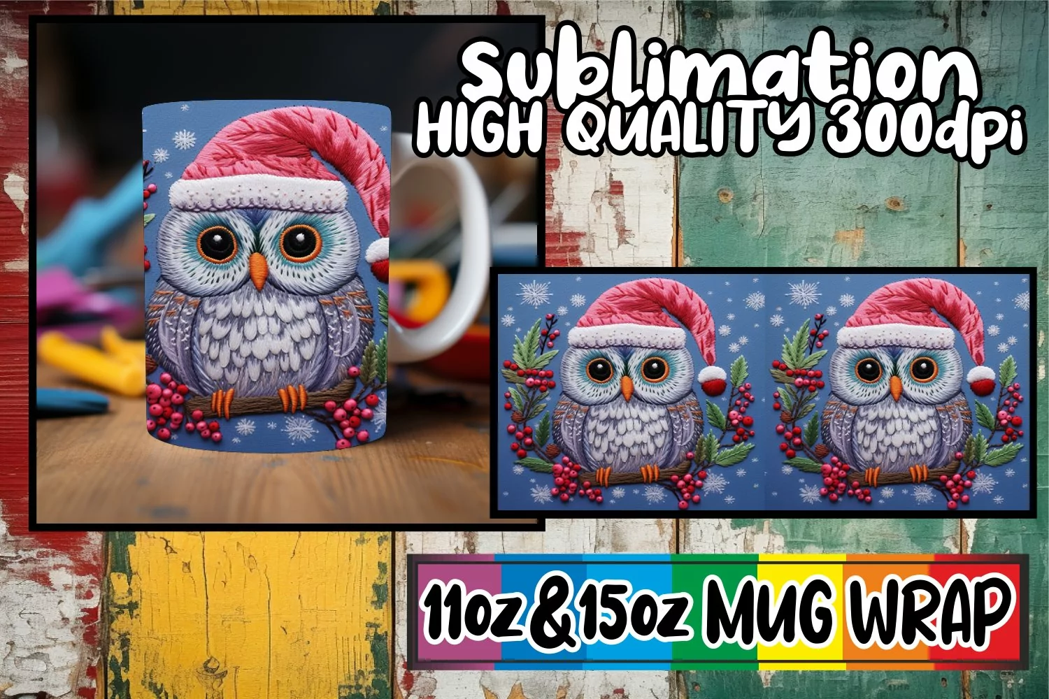 Embroidered Christmas Owl Mug Wrap Winter Design example image 1