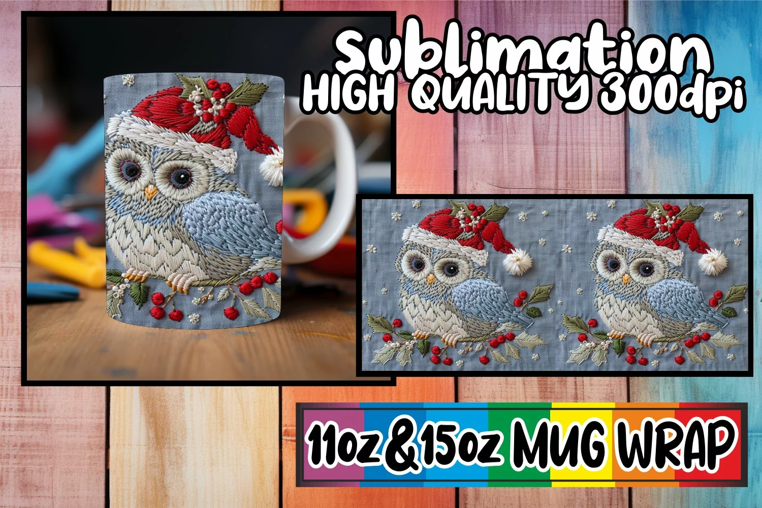 Festive Owl Mug Wrap 11oz 15oz Christmas Embroidery example image 1