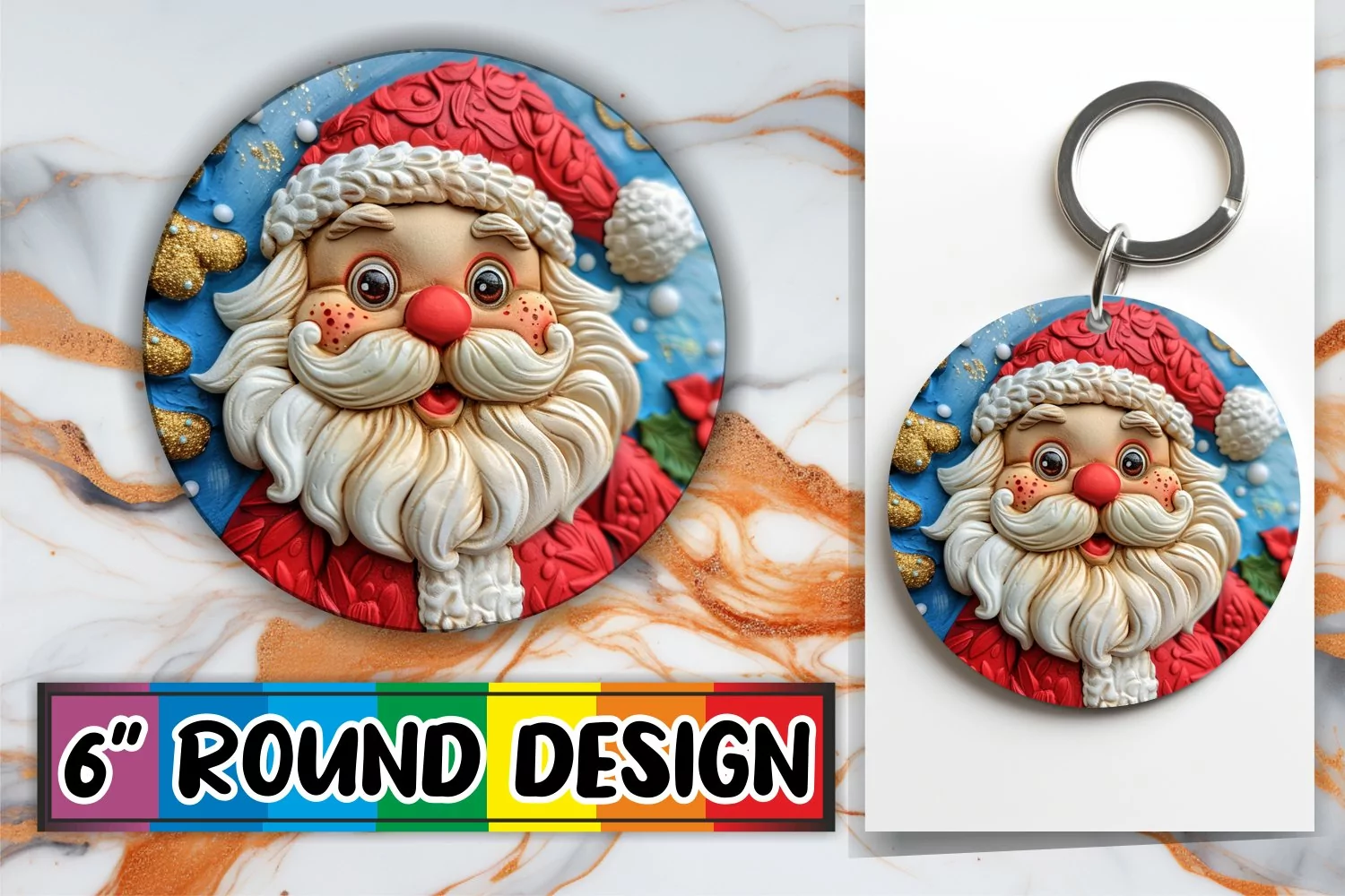 Similar Design Products to Winter 3D Santa Claus Keychain Round Design PNG Sublimation
