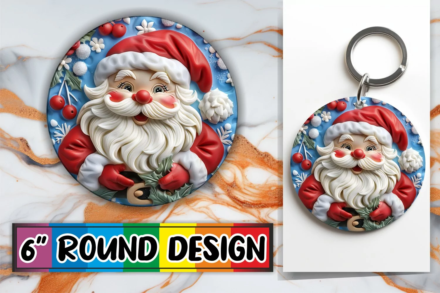 Winter 3D Santa Claus Keychain Round Design PNG Holiday example image 1