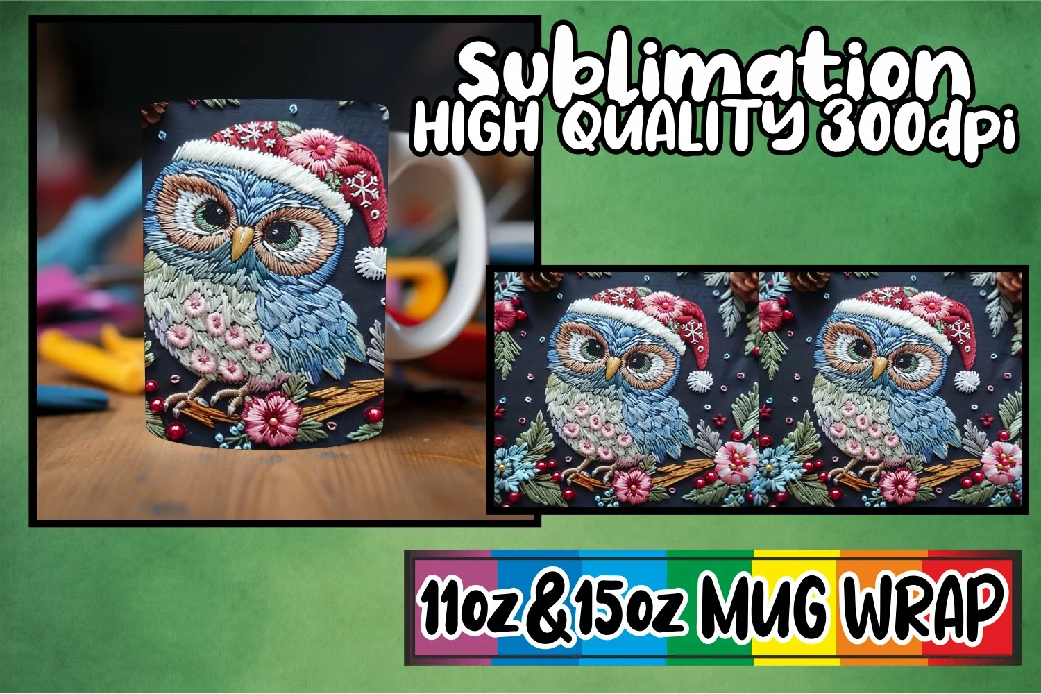 Holiday Owl Wrap for 11oz 15oz Mug Embroidered Design example image 1