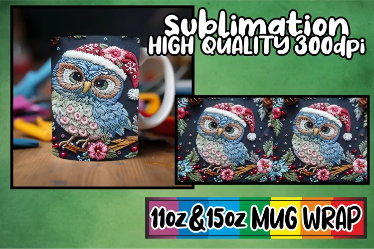 Coffee Mug Mug Sublimation Design Christmas Mug Sublimation Sublimation Mug Wrap Sublimation Coffee Cup Christmas Mug Wrap Owl Mug Wrap Winter Mug Wrap Embroidered Sublimation 3d Embroidered Png