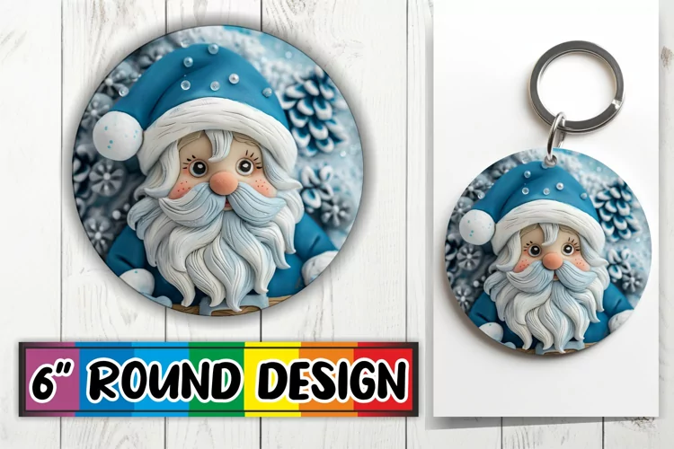 3D Santa Claus Round Keychain Design PNG Holiday example image 1