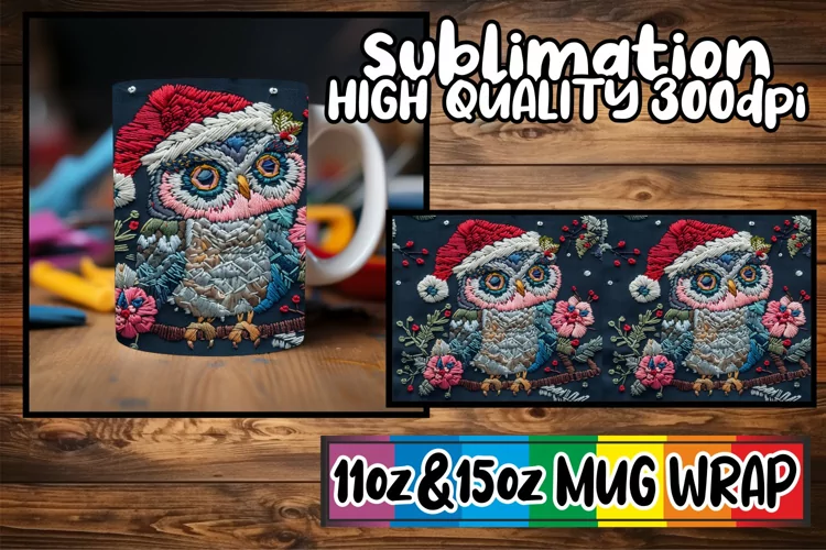 Coffee Mug Mug Sublimation Design Christmas Mug Sublimation Sublimation Mug Wrap Sublimation Coffee Cup Christmas Mug Wrap Owl Mug Wrap Winter Mug Wrap Embroidered Sublimation 3d Embroidered Png