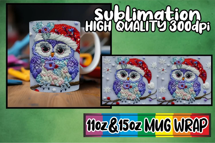 Coffee Mug Mug Sublimation Design Christmas Mug Sublimation Sublimation Mug Wrap Sublimation Coffee Cup Christmas Mug Wrap Owl Mug Wrap Winter Mug Wrap Embroidered Sublimation 3d Embroidered Png