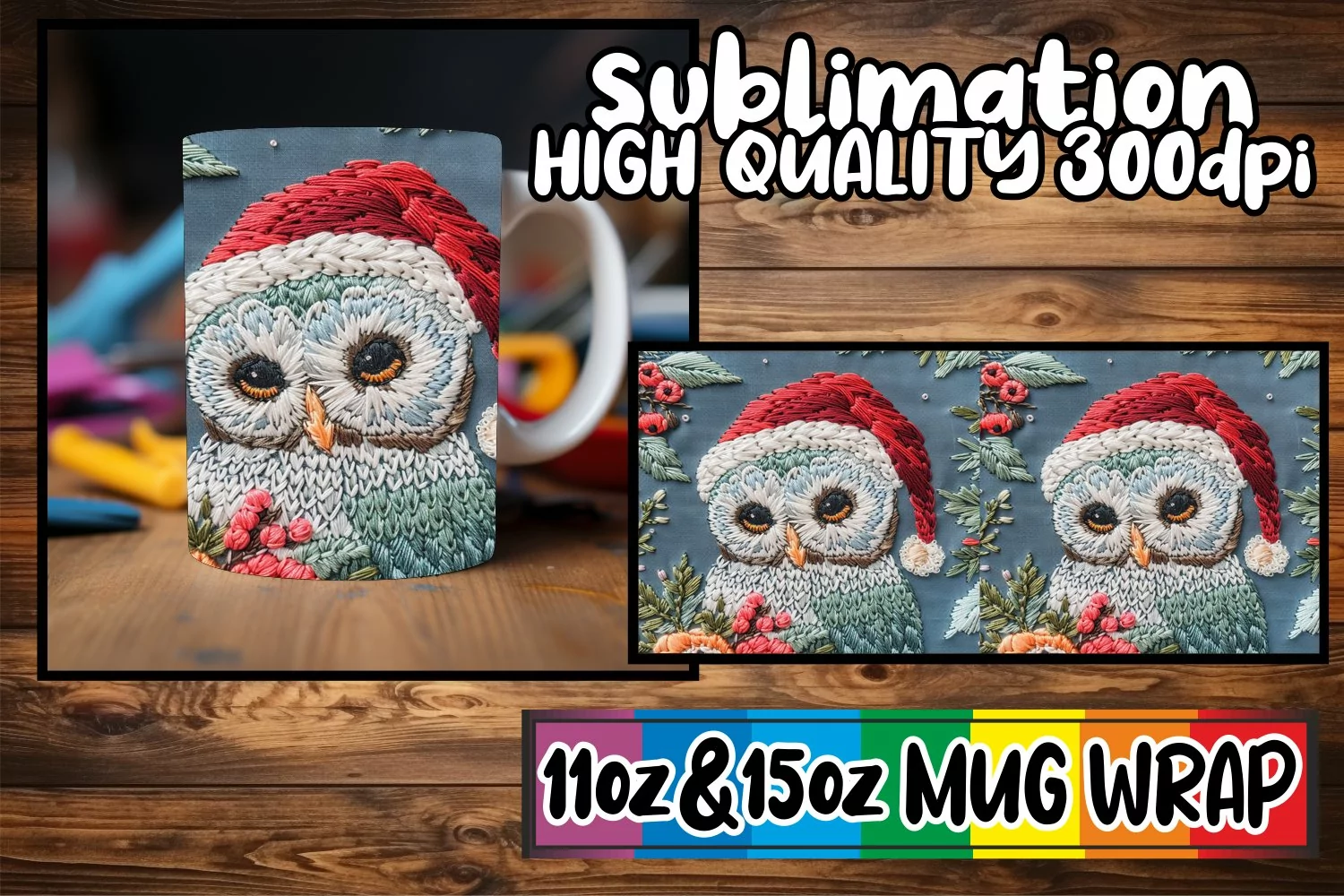 Owl Christmas Mug Wrap Embroidered 11oz 15oz Design example image 1