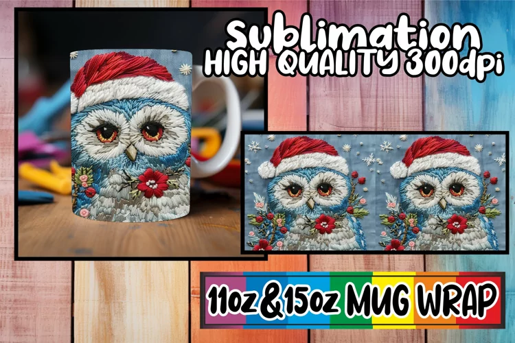 Coffee Mug Mug Sublimation Design Christmas Mug Sublimation Sublimation Mug Wrap Sublimation Coffee Cup Christmas Mug Wrap Owl Mug Wrap Winter Mug Wrap Embroidered Sublimation 3d Embroidered Png