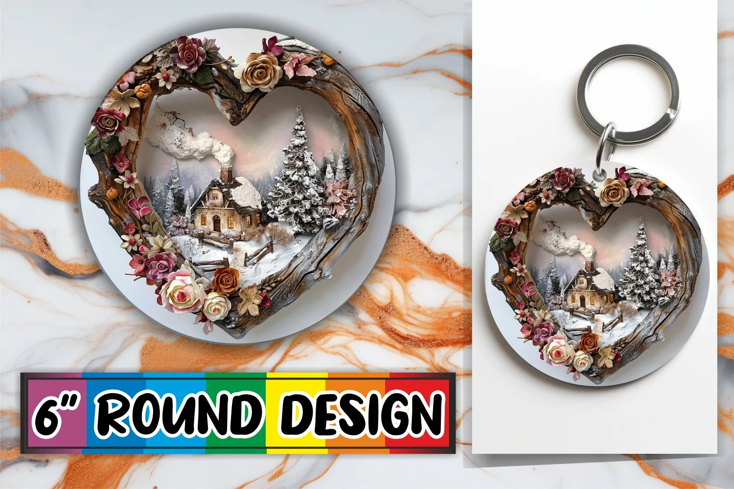 Similar Design Products to 3D Heart Frame Round Design Winter Scene Sublimation PNG