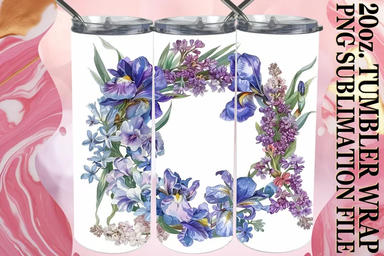 20oz Watercolor Flower Wreath Wrap for Spring Tumblers