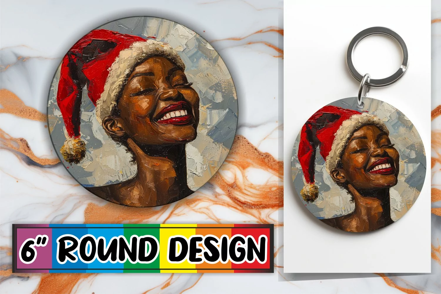 Print PNG Sublimation African Round Design Woman in Santa example image 1