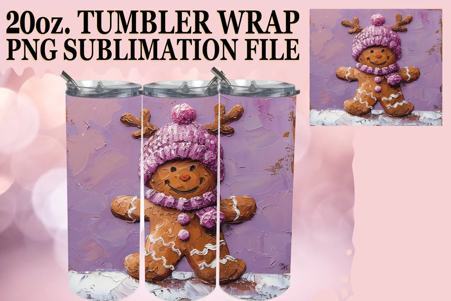 Winter Themed Gingerbread Man 20oz Tumbler Wrap example image 1