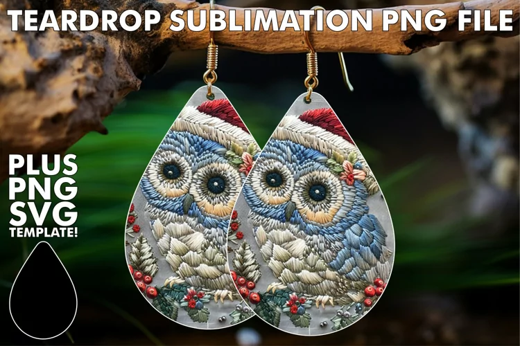 Winter Owl Teardrop Earrings Design Christmas Sublimation