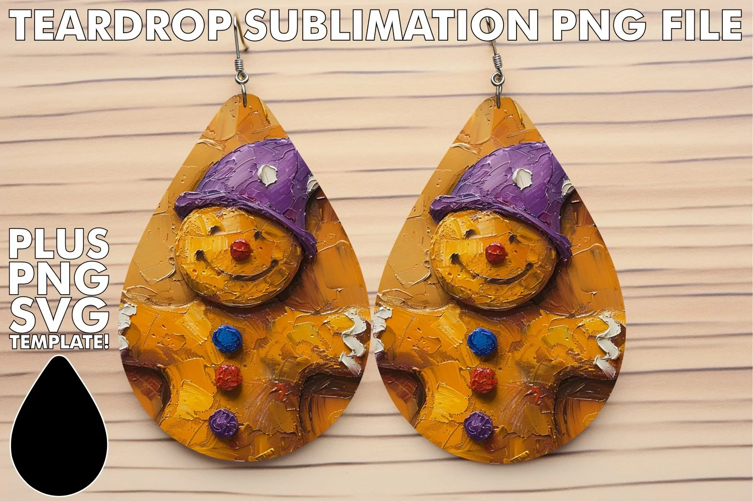 Cheerful Teardrop EARRINGS PNG, Gingerbread Man example image 1